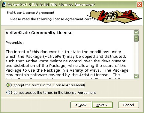 Microsoft Windows XP [Version 5.1.2600] (C) Copyright 1985-2001 Microsoft Corp. prompt >perl -v This is perl, v5.8.0 built for MSWin32-x86-multi-thread (with 1 registered patch, see perl -V for more detail) Copyright 1987-2002, Larry Wall Binary build 806 provided by ActiveState Corp. http://www.ActiveState.com Built 00:45:44 Mar 31 2003 Perl may be copied only under the terms of either the Artistic License or the GNU General Public License, which may be found in the Perl 5 source kit. Complete documentation for Perl, including FAQ lists, should be found on this system using `man perl' or `perldoc perl'. If you have access to the Internet, point your browser at http://www.perl.com/, the Perl Home Page. |