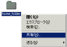 - 作成したフォルダを右クリックし、[共有とセキュリティ]を選択し、ダイアログを出す。