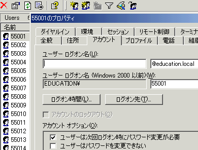 アカウントとは、サーバーに接続する際、接続認証に必要なIDとPWである。神戸市立の中学校は初期導入時には、機械ごとにアカウントが振られ、パスワード無しで、自動接続するように設定されている。もちろん、こうすれば、今までのスタンドアロンであった場合とほぼ同一の方法でネットワークに接続でき、さらにネットワーク上の資源も利用することができるので、教師や生徒にとって取っ付きやすいことは確かである。