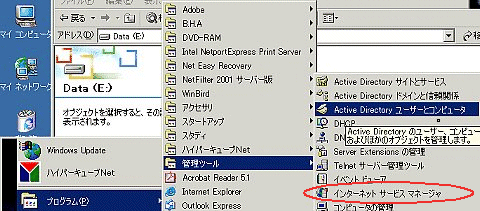 - 『管理ツール』にある『インターネットサービスマネージャ』を起動する。