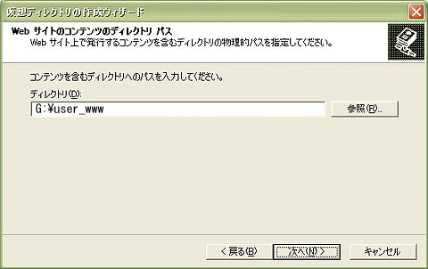- 次に[仮想ディレクトリ]にするフォルダを参照して、指定する。