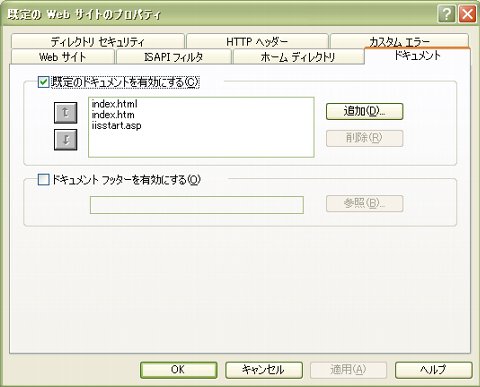 [ドキュメント]タブをクリックし、[index.html]と[index.htm]を追加する。