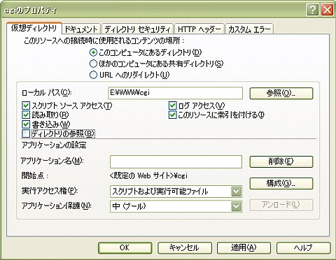 まず、CGI設置フォルダを仮想フォルダとして設定します。