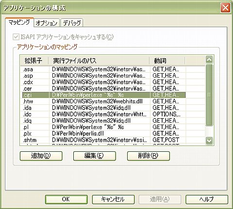 再度、[追加]ボタンをクリックし、同様に拡張子[.pl]について追加する。