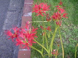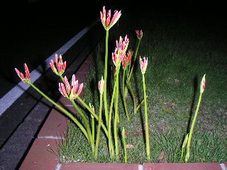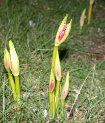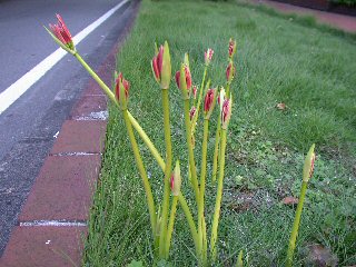 2003/09/28 花茎を一気に伸ばし、赤い花被がはっきりとわかるようになってきました。 |