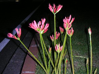 2003/09/30 まだ、開花しませんね。昨日の状態とほぼ同じですね。 でも、少し、花被が扇形に広がってきています。 花茎の成長はほぼ止まったようです。 |