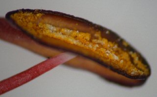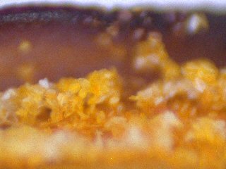 2003/10/01 葯の中の拡大図です。花粉が見えます。 NIKON COOLPIX 995 + TelescoMicro ED6x18D + クローズアップレンズ2 + MACRO COOL-RIGHT SL-1 (x45) ※本体側でさらにズームをかけました。 |