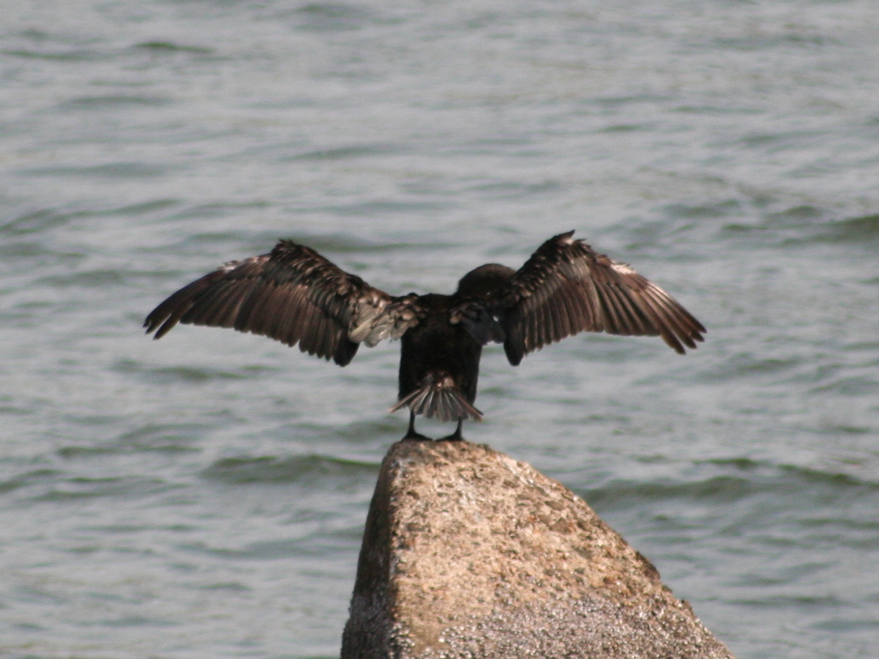 | カワウ[original] 羽を広げてゆったりと日なたぼっこ |