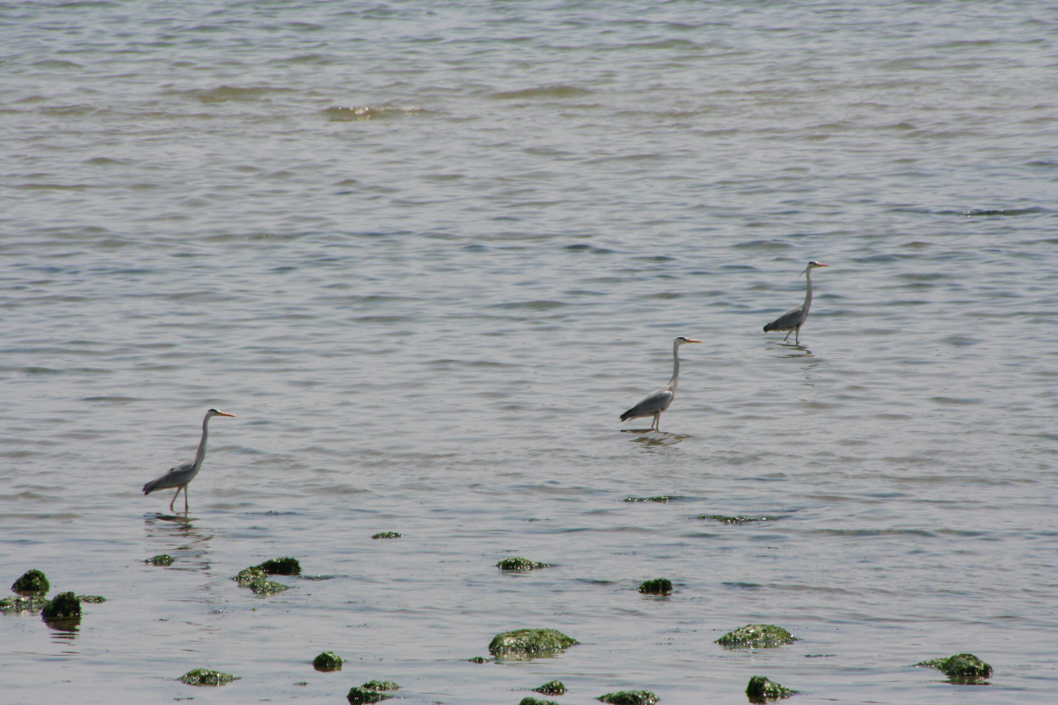 次に、海浜公園を東へと進み、いよいよ今日のメインである鳥を観察した。最初に、アオサギ・コサギのように大型のサギの仲間がまず目に入った。