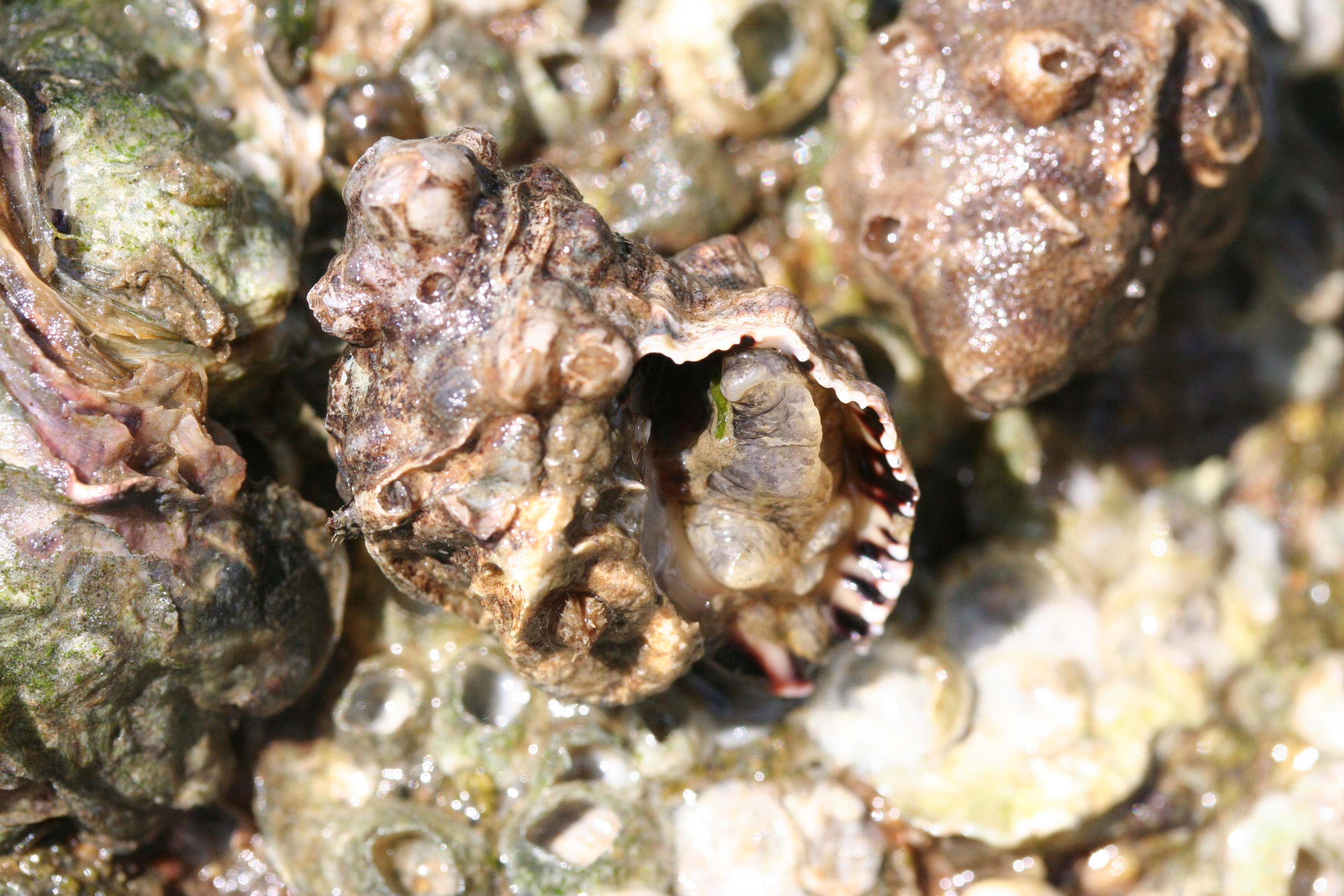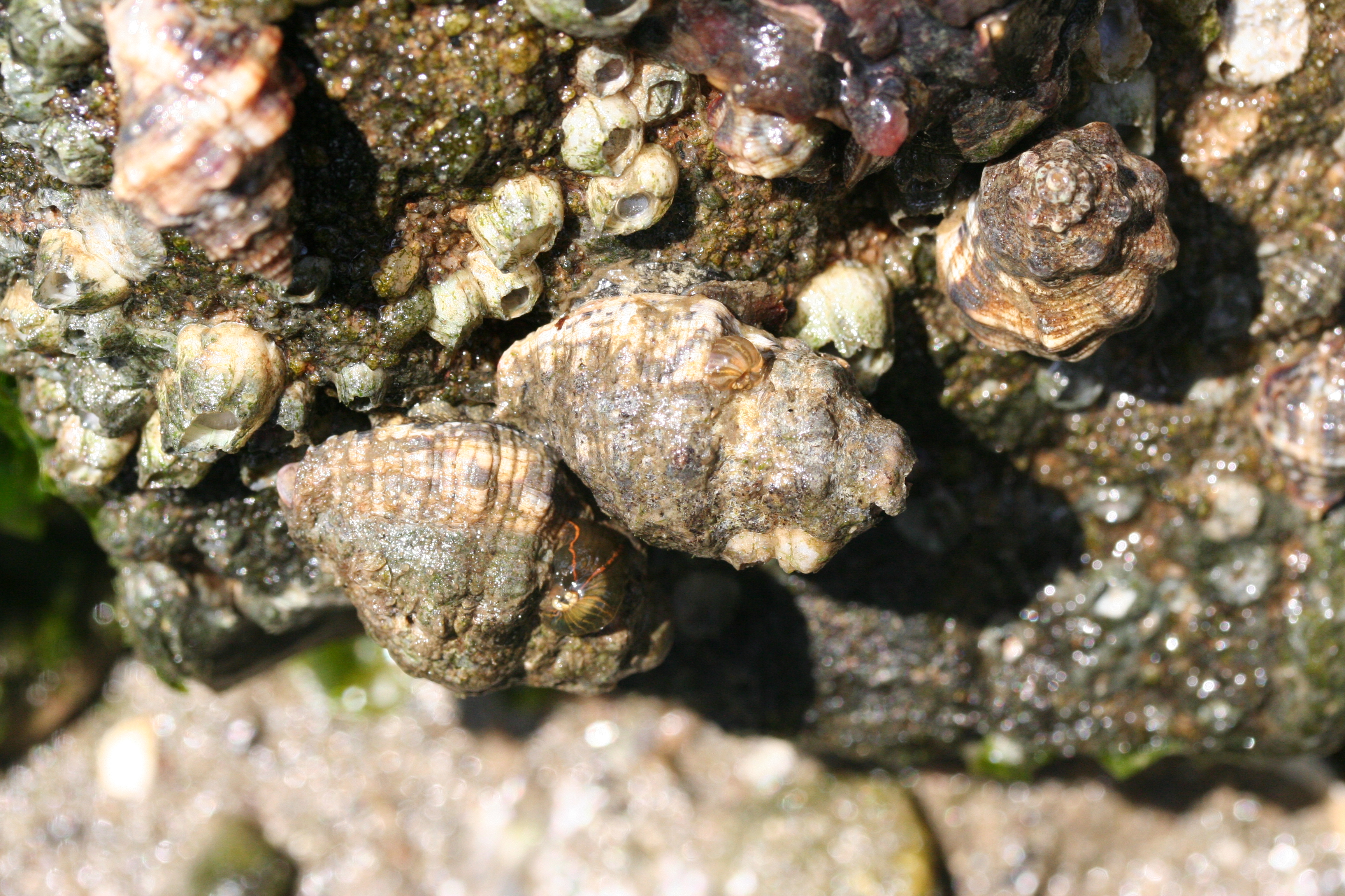 また、岩にはフジツボ・マガキ・イボニシガイが数多くついており、またタテジマイソギンチャクやアナアオサも引き潮で海中に浸かっていなくても耐えていることに感心したりした。