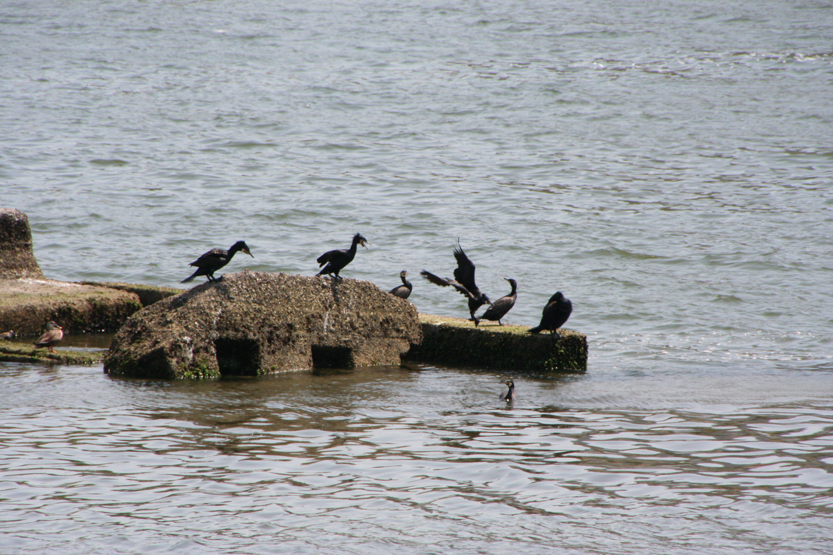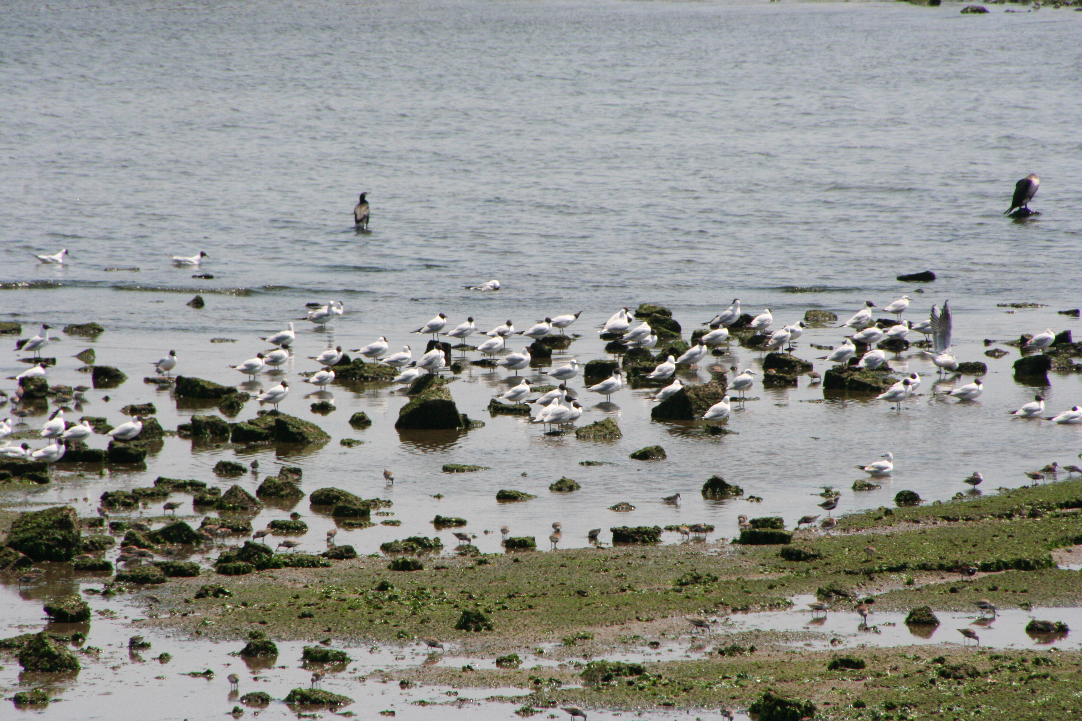 武庫川の河口へと近づくと、気持ちよさそうにひなたぼっこをしているカワウや、ユリカモメの団体さんが迎えてくれた。