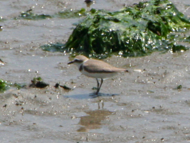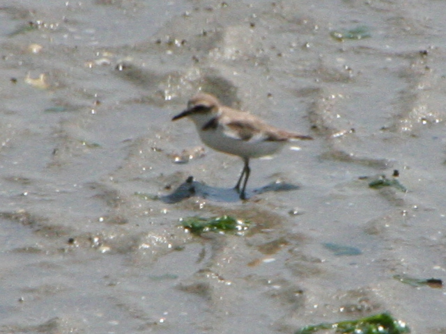 | シロチドリ[original] 目の周りはコチドリのようにふちどりなく胸の黒帯が切れる |